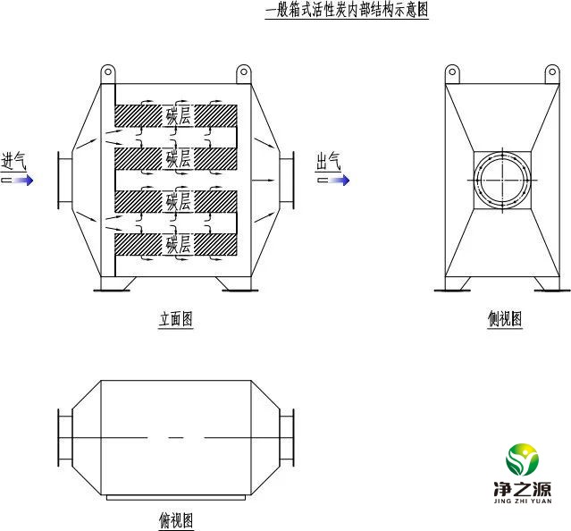 無論是臥式活性炭罐還是箱式活性炭罐內(nèi)部結(jié)構(gòu)應(yīng)設(shè)計(jì)合理(參見附件1),氣體流通順暢、無短路、無死角?;钚蕴课窖b置的門、焊縫、管道連接處等均應(yīng)嚴(yán)密,不得漏氣,所有螺 栓、螺母均應(yīng)經(jīng)過表面處理,連接牢固。金屬材質(zhì)裝置外殼應(yīng)采 用不銹鋼或防腐處理,表面光潔不得有銹蝕、毛刺、凹凸不平等 缺陷。