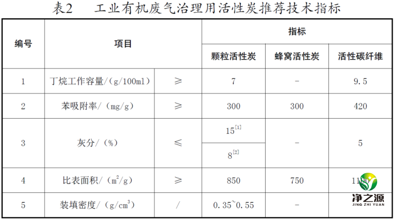 2.工業(yè)有機(jī)廢氣治理用活性炭常規(guī)及推薦技術(shù)指標(biāo)